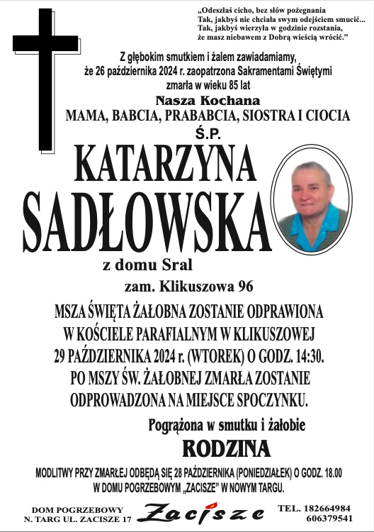 Katarzyna Sadłowska - Nekrologi - podhale24.pl