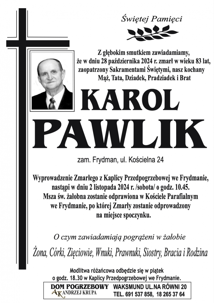 Podhale24.pl zastrzega sobie prawo do nie publikowania wspomnień, w szczególności tych nie związanych z profilem działu nekrologi, zawierających wulgaryzmy, wzywających do zachowań niezgodnych z prawem, obrażających osoby publiczne i prywatne, obrażających inne narodowości, rasy, religie itd, oraz te, bez możliwości telefonicznej lub mailowej weryfikacji ich autora.