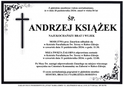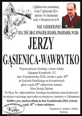 Podhale24.pl zastrzega sobie prawo do nie publikowania wspomnień, w szczególności tych nie związanych z profilem działu nekrologi, zawierających wulgaryzmy, wzywających do zachowań niezgodnych z prawem, obrażających osoby publiczne i prywatne, obrażających inne narodowości, rasy, religie itd, oraz te, bez możliwości telefonicznej lub mailowej weryfikacji ich autora.