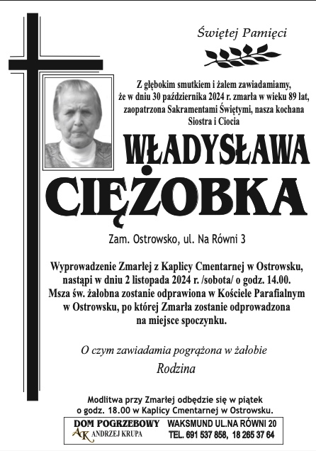 Władysława Ciężobka - Nekrologi - podhale24.pl
