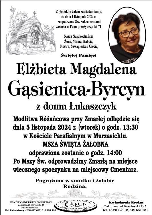Elżbieta Magdalena Gąsienica-Byrcyn - Nekrologi - podhale24.pl