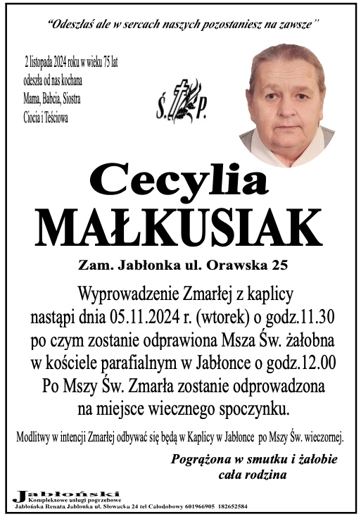 Cecyiia Małkusiak - Nekrologi - podhale24.pl