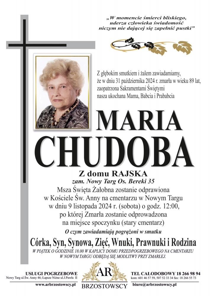 Maria Chudoba - Nekrologi - podhale24.pl