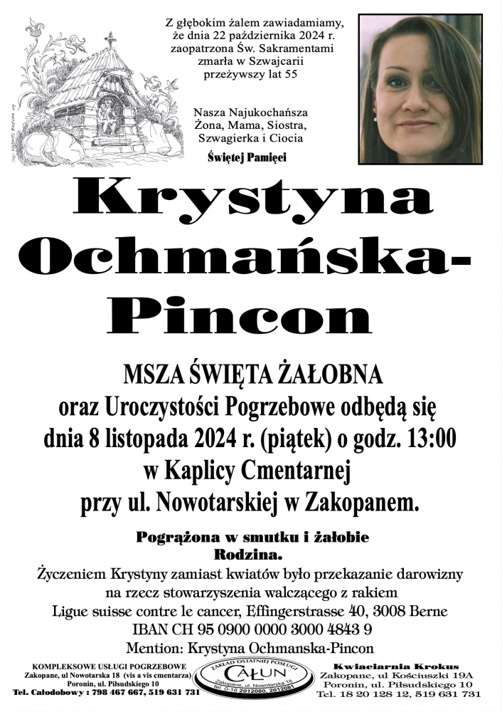 Krystyna Ochmańska-Pincon - Nekrologi - podhale24.pl