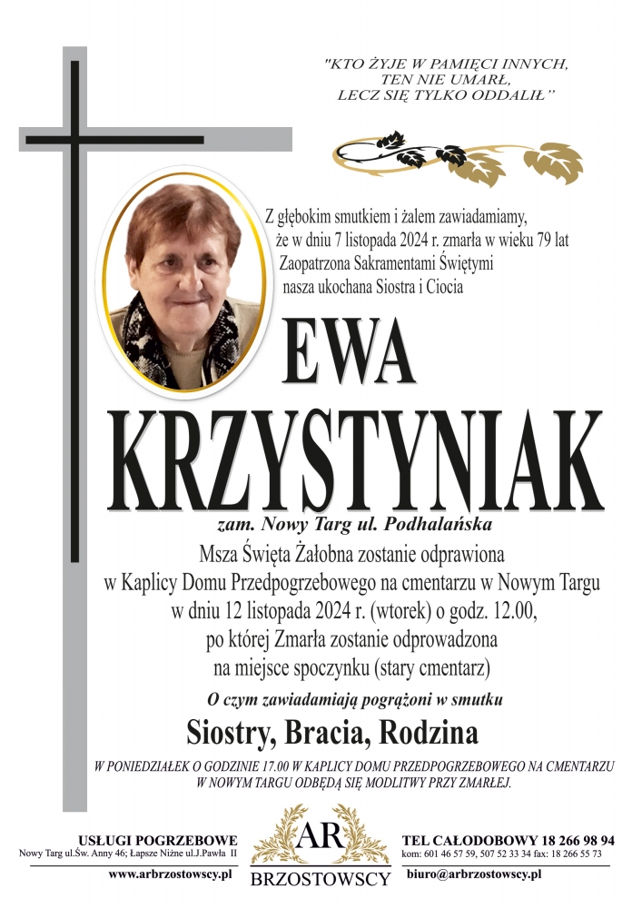 Ewa Krzystyniak - Nekrologi - podhale24.pl