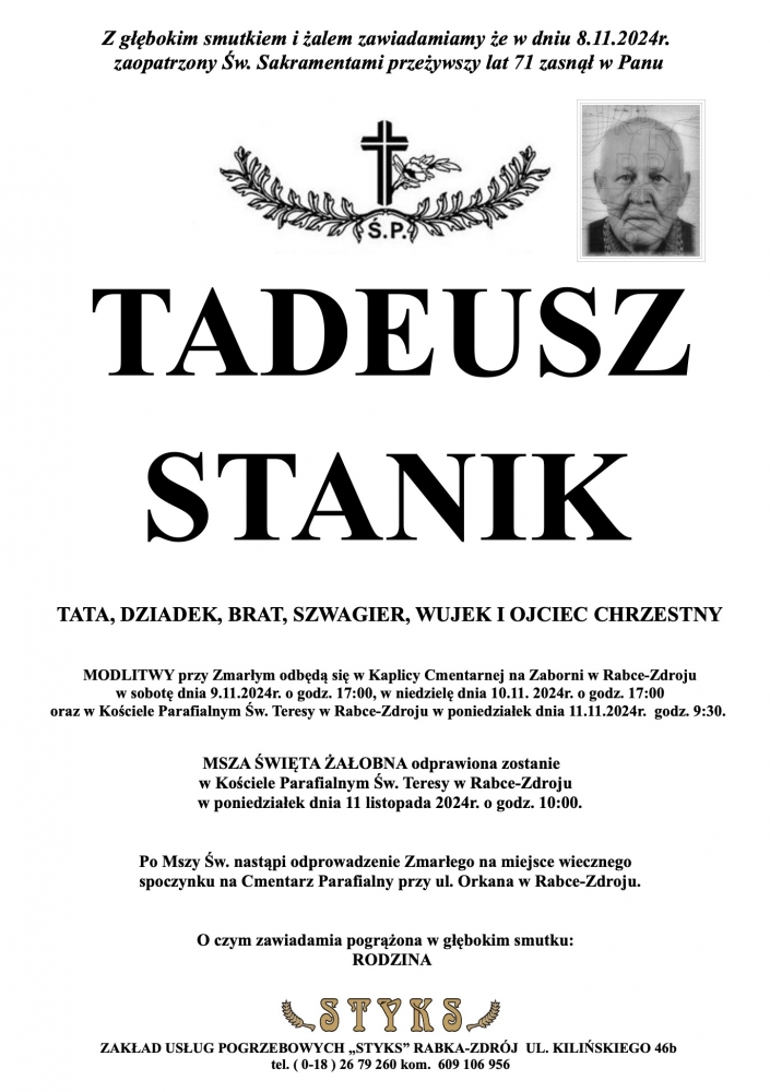 Tadeusz Stanik - Nekrologi - podhale24.pl