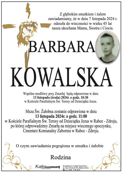 Barbara Kowalska - Nekrologi - podhale24.pl