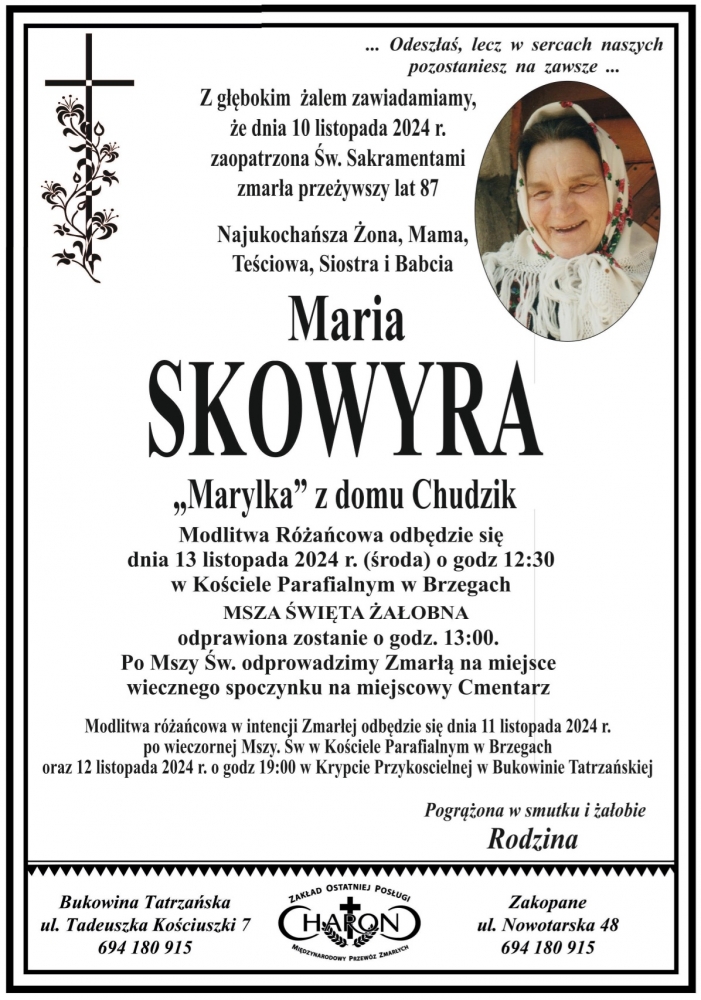Maria Skowyra - Nekrologi - podhale24.pl