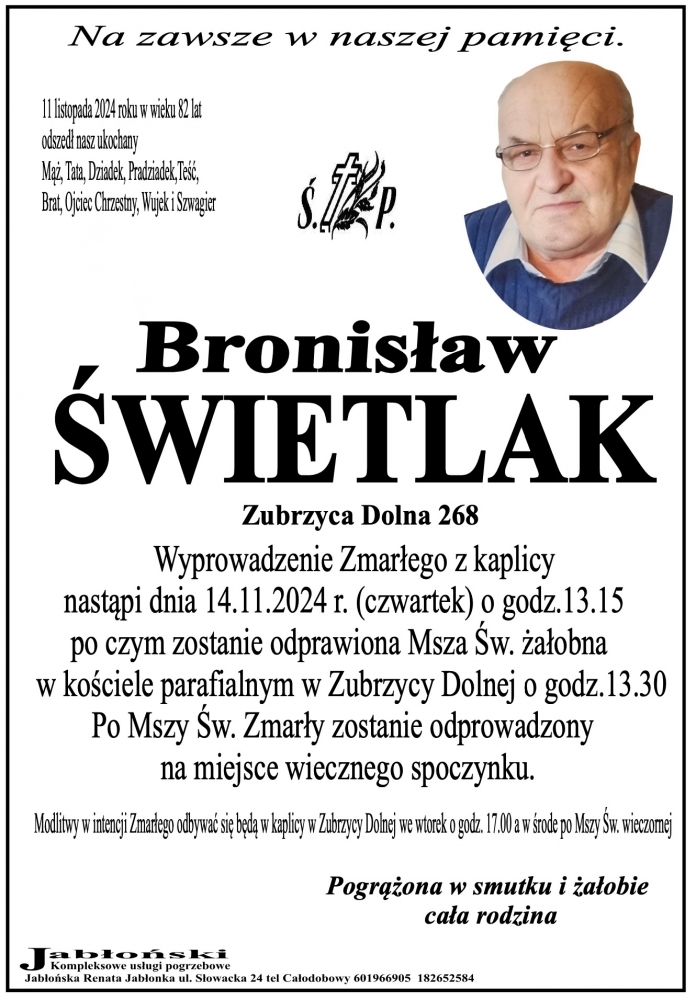 Bronisław Świetlak - Nekrologi - podhale24.pl