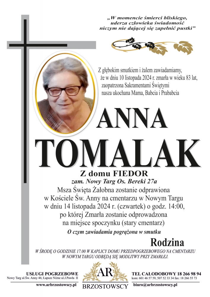 Anna Tomalak - Nekrologi - podhale24.pl