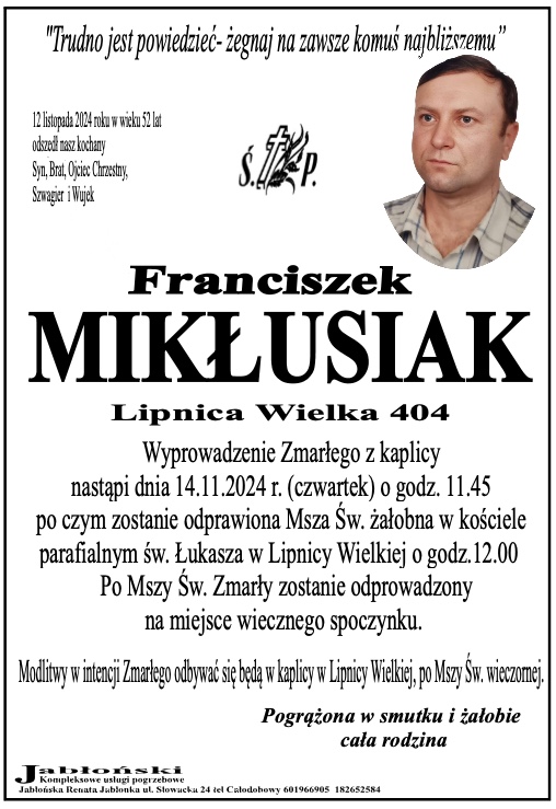 Franciszek Mikłusiak - Nekrologi - podhale24.pl