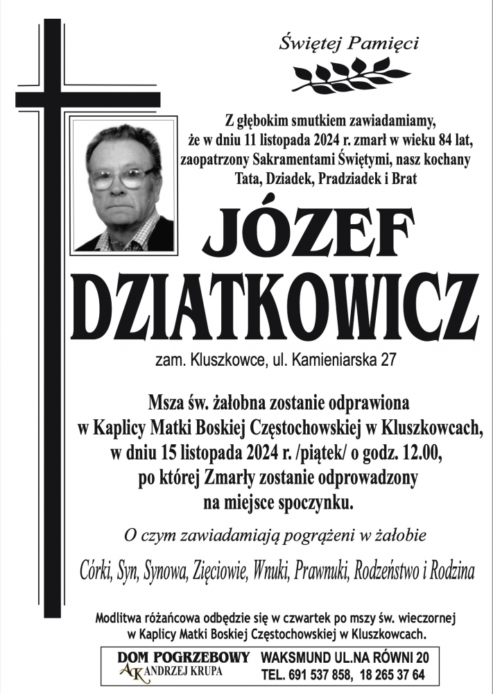 Józef Dziatkowicz - Nekrologi - podhale24.pl