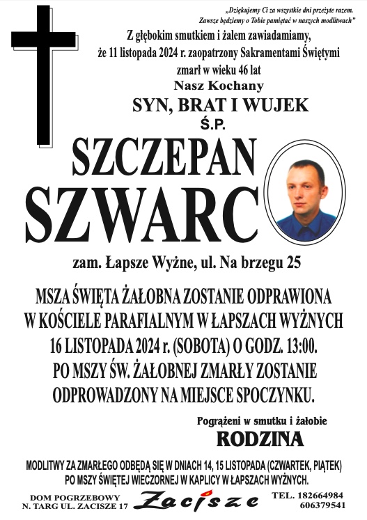 Szczepan Szwarc - Nekrologi - podhale24.pl