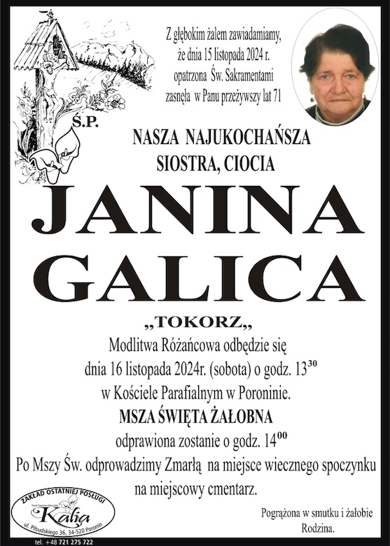 Podhale24.pl zastrzega sobie prawo do nie publikowania wspomnień, w szczególności tych nie związanych z profilem działu nekrologi, zawierających wulgaryzmy, wzywających do zachowań niezgodnych z prawem, obrażających osoby publiczne i prywatne, obrażających inne narodowości, rasy, religie itd, oraz te, bez możliwości telefonicznej lub mailowej weryfikacji ich autora.