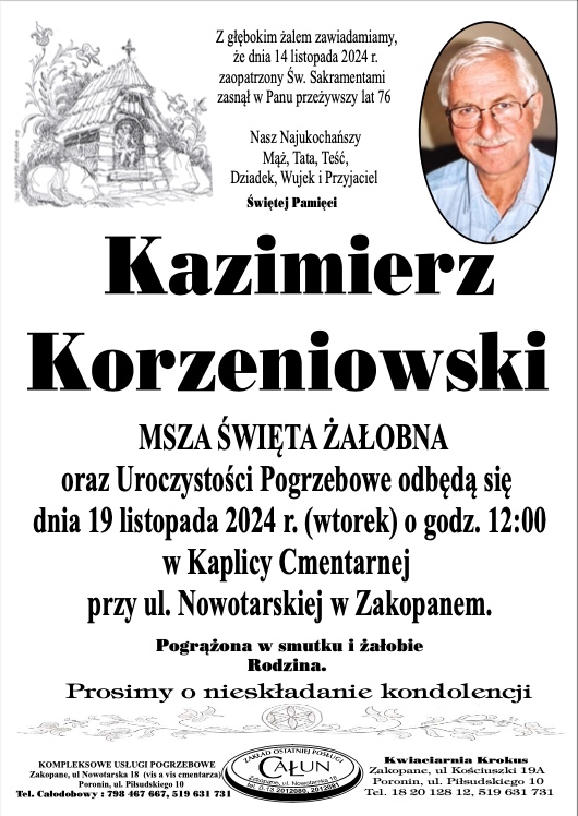 Kazimierz Korzeniowski - Nekrologi - podhale24.pl