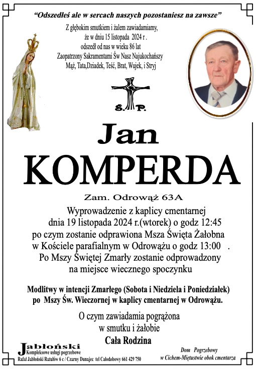 Podhale24.pl zastrzega sobie prawo do nie publikowania wspomnień, w szczególności tych nie związanych z profilem działu nekrologi, zawierających wulgaryzmy, wzywających do zachowań niezgodnych z prawem, obrażających osoby publiczne i prywatne, obrażających inne narodowości, rasy, religie itd, oraz te, bez możliwości telefonicznej lub mailowej weryfikacji ich autora.