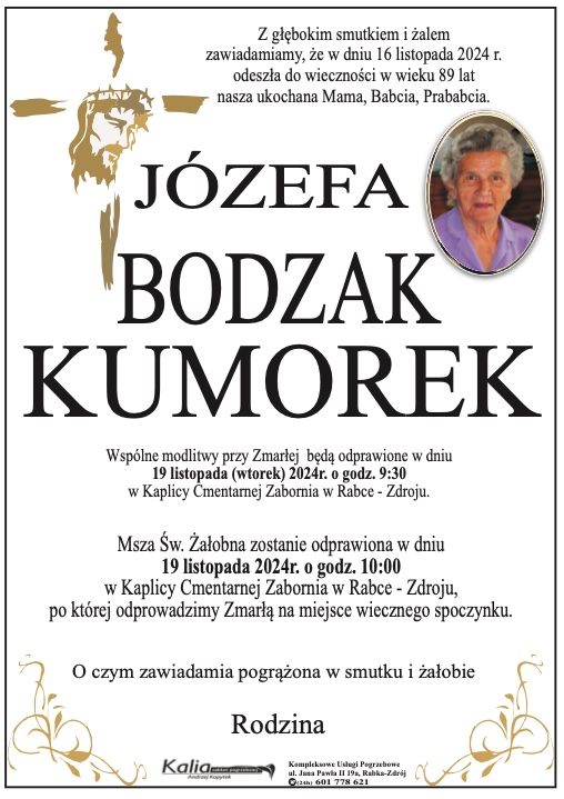 Józefa Bodzak Kumorek - Nekrologi - podhale24.pl