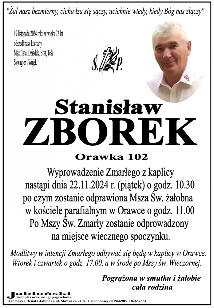 Stanisław Zborek - Nekrologi - podhale24.pl