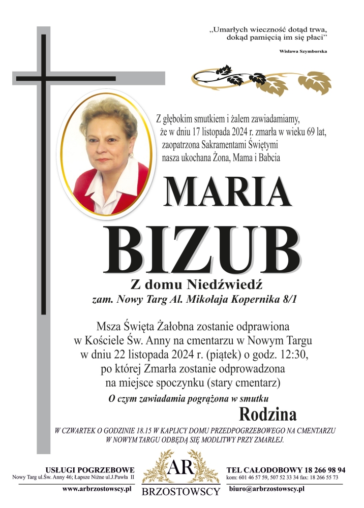 Maria Bizub - Nekrologi - podhale24.pl