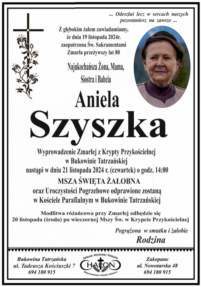 Aniela Szyszka - Nekrologi - podhale24.pl