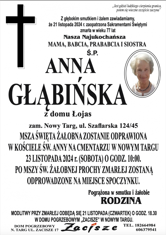 Anna Głąbińska - Nekrologi - podhale24.pl
