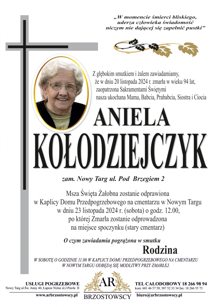 Aniela Kołodziejczyk - Nekrologi - podhale24.pl