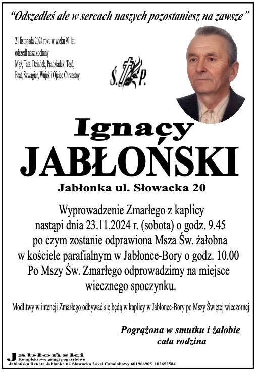Ignacy Jabłoński - Nekrologi - podhale24.pl