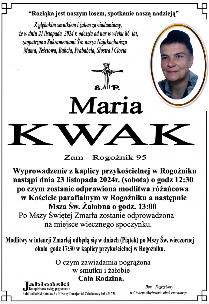 Maria Kwak - Nekrologi - podhale24.pl