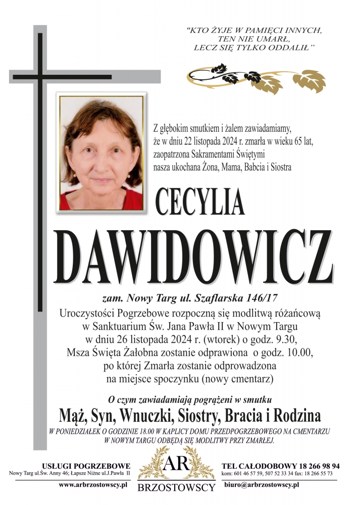 Cecylia Dawidowicz - Nekrologi - podhale24.pl