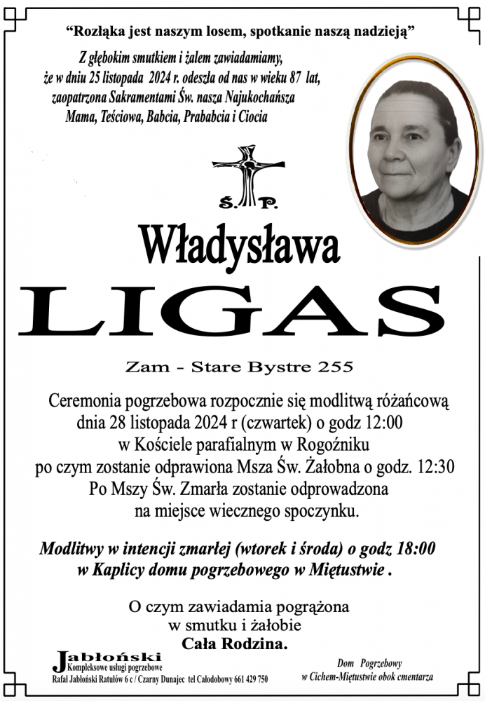 Władysława Ligas - Nekrologi - podhale24.pl
