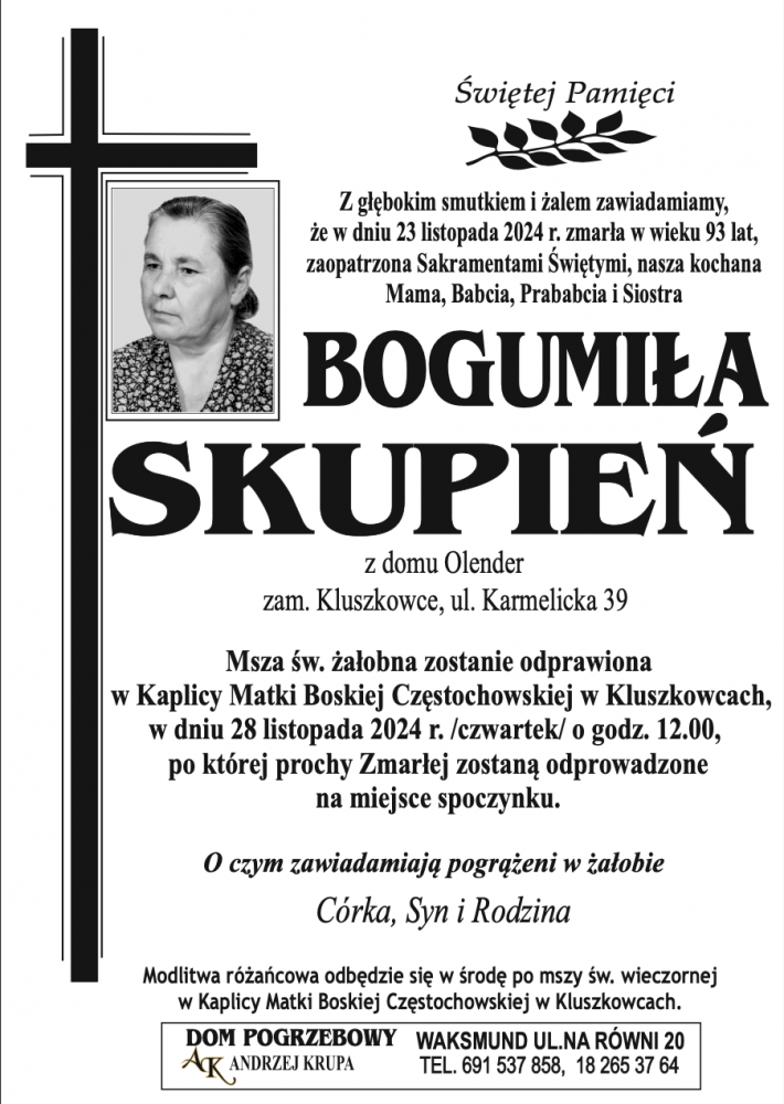 Bogumiła Skupień - Nekrologi - podhale24.pl