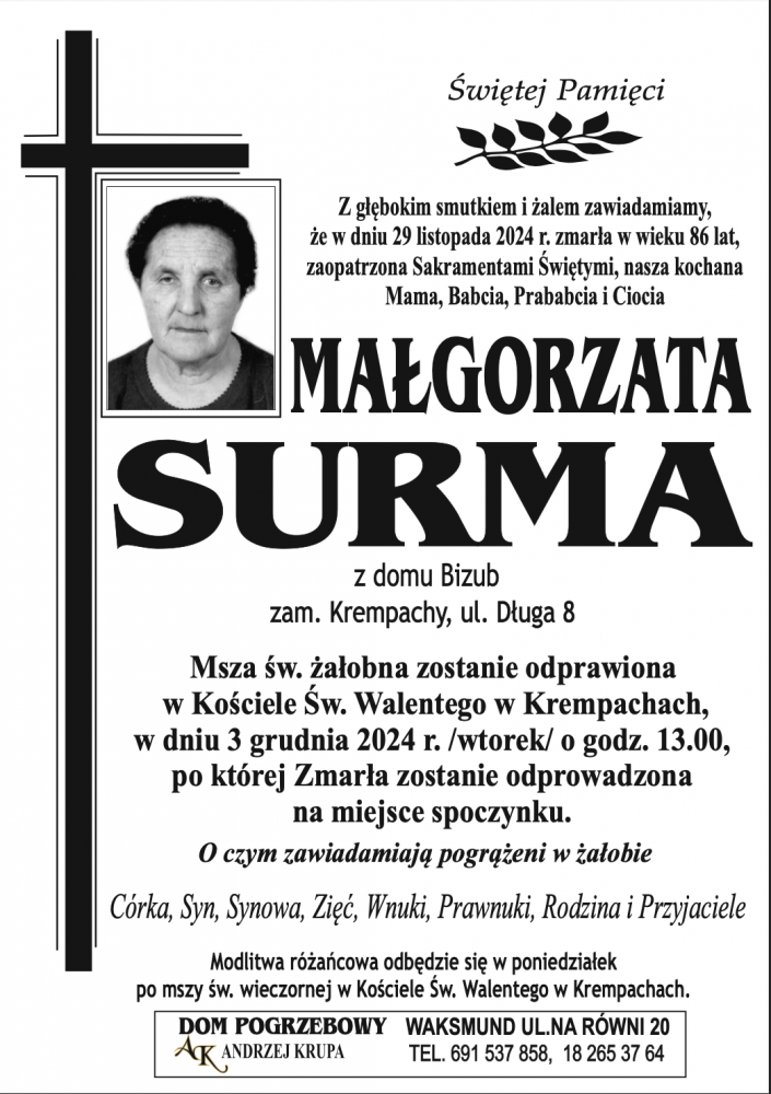 Małgorzata Surma - Nekrologi - podhale24.pl