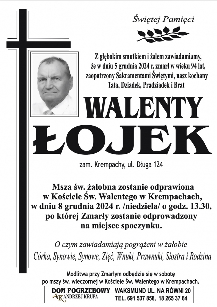 Walenty Łojek - Nekrologi - podhale24.pl