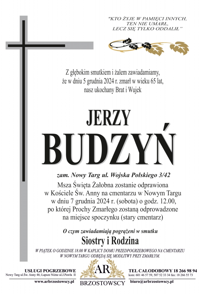Jerzy Budzyń - Nekrologi - podhale24.pl