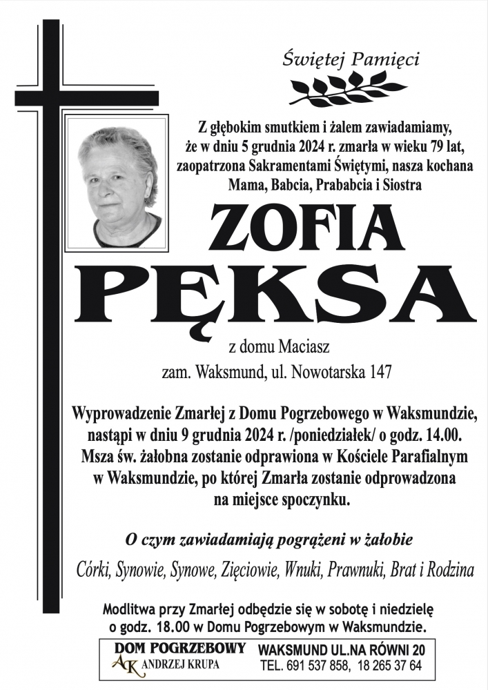 Zofia Pęksa - Nekrologi - podhale24.pl