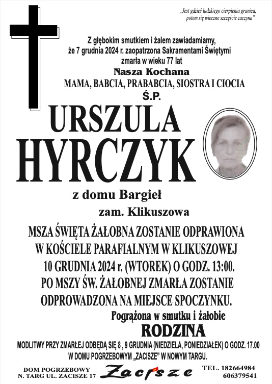 Urszula Hyrczyk - Nekrologi - podhale24.pl