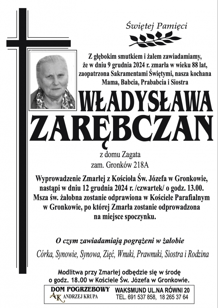 Władysława Zarębczan - Nekrologi - podhale24.pl