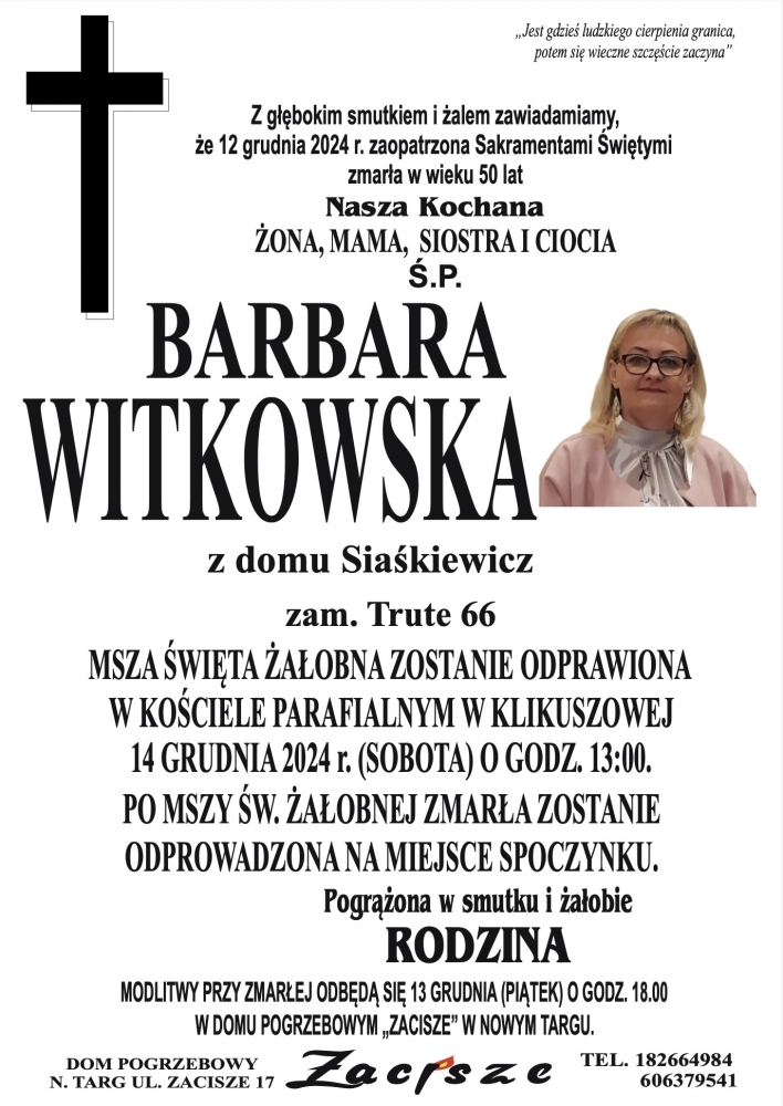 Barbara Witkowska - Nekrologi - podhale24.pl
