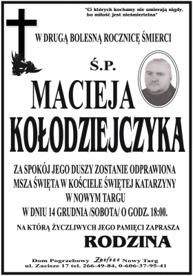 Podhale24.pl zastrzega sobie prawo do nie publikowania wspomnień, w szczególności tych nie związanych z profilem działu nekrologi, zawierających wulgaryzmy, wzywających do zachowań niezgodnych z prawem, obrażających osoby publiczne i prywatne, obrażających inne narodowości, rasy, religie itd, oraz te, bez możliwości telefonicznej lub mailowej weryfikacji ich autora.