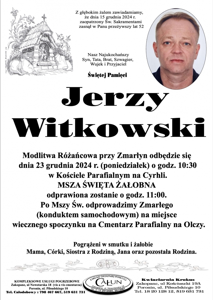 Jerzy Witkowski - Nekrologi - podhale24.pl