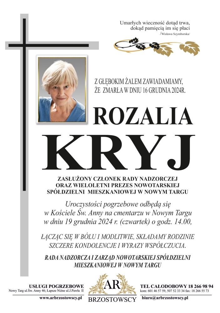 Rozalia Kryj - Nekrologi - podhale24.pl