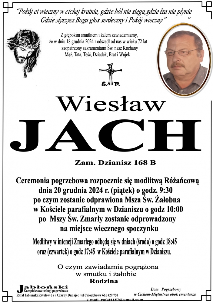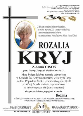 Podhale24.pl zastrzega sobie prawo do nie publikowania wspomnień, w szczególności tych nie związanych z profilem działu nekrologi, zawierających wulgaryzmy, wzywających do zachowań niezgodnych z prawem, obrażających osoby publiczne i prywatne, obrażających inne narodowości, rasy, religie itd, oraz te, bez możliwości telefonicznej lub mailowej weryfikacji ich autora.