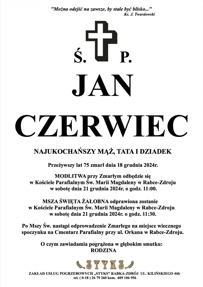 Jan Czerwiec - Nekrologi - podhale24.pl