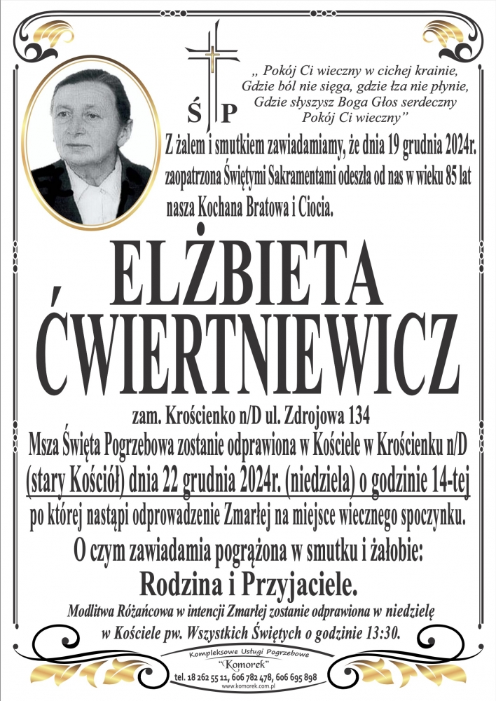 Elżbieta Ćwiertniewicz - Nekrologi - podhale24.pl