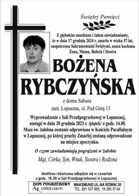 Podhale24.pl zastrzega sobie prawo do nie publikowania wspomnień, w szczególności tych nie związanych z profilem działu nekrologi, zawierających wulgaryzmy, wzywających do zachowań niezgodnych z prawem, obrażających osoby publiczne i prywatne, obrażających inne narodowości, rasy, religie itd, oraz te, bez możliwości telefonicznej lub mailowej weryfikacji ich autora.