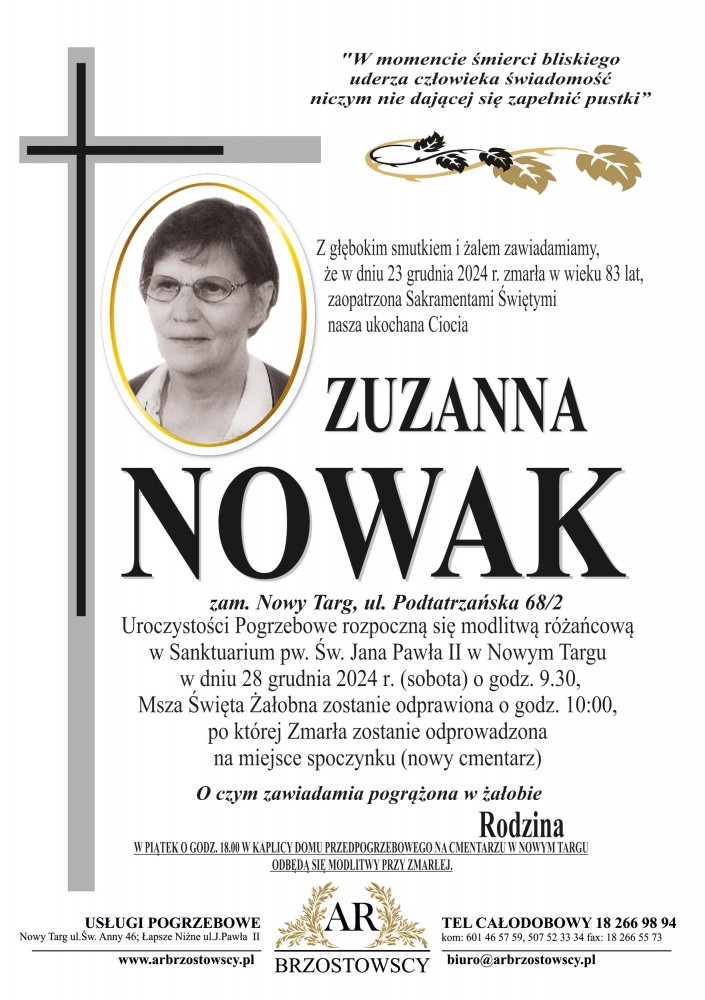 Zuzanna Nowak - Nekrologi - podhale24.pl