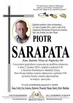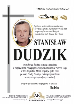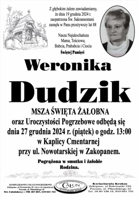 Podhale24.pl zastrzega sobie prawo do nie publikowania wspomnień, w szczególności tych nie związanych z profilem działu nekrologi, zawierających wulgaryzmy, wzywających do zachowań niezgodnych z prawem, obrażających osoby publiczne i prywatne, obrażających inne narodowości, rasy, religie itd, oraz te, bez możliwości telefonicznej lub mailowej weryfikacji ich autora.