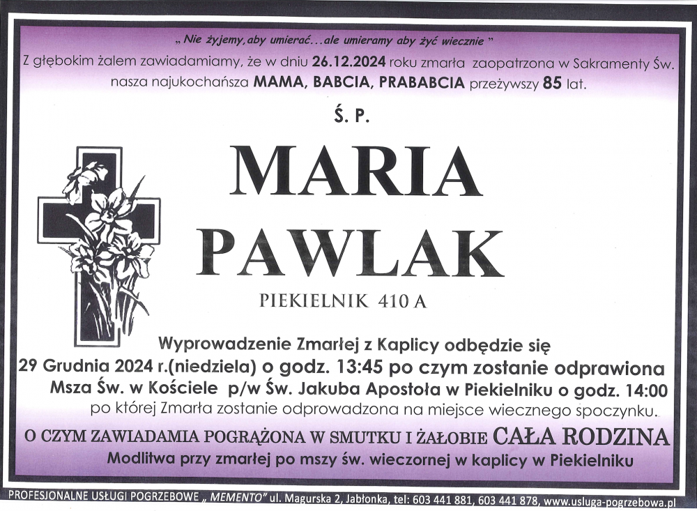 Maria Pawlak - Nekrologi - podhale24.pl