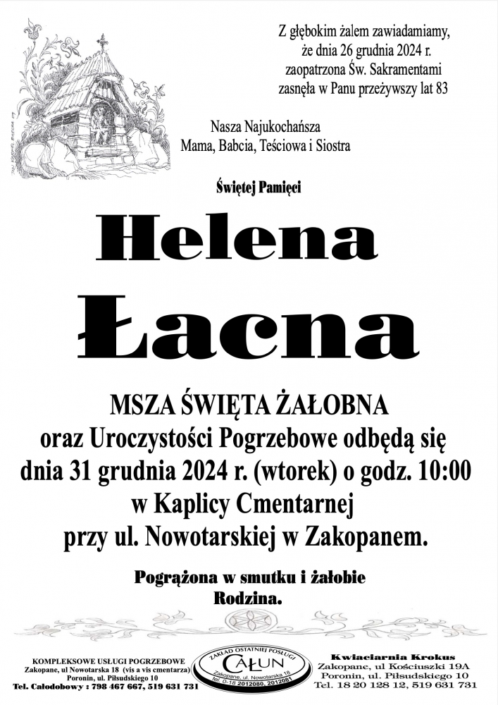 Helena Łacna - Nekrologi - podhale24.pl