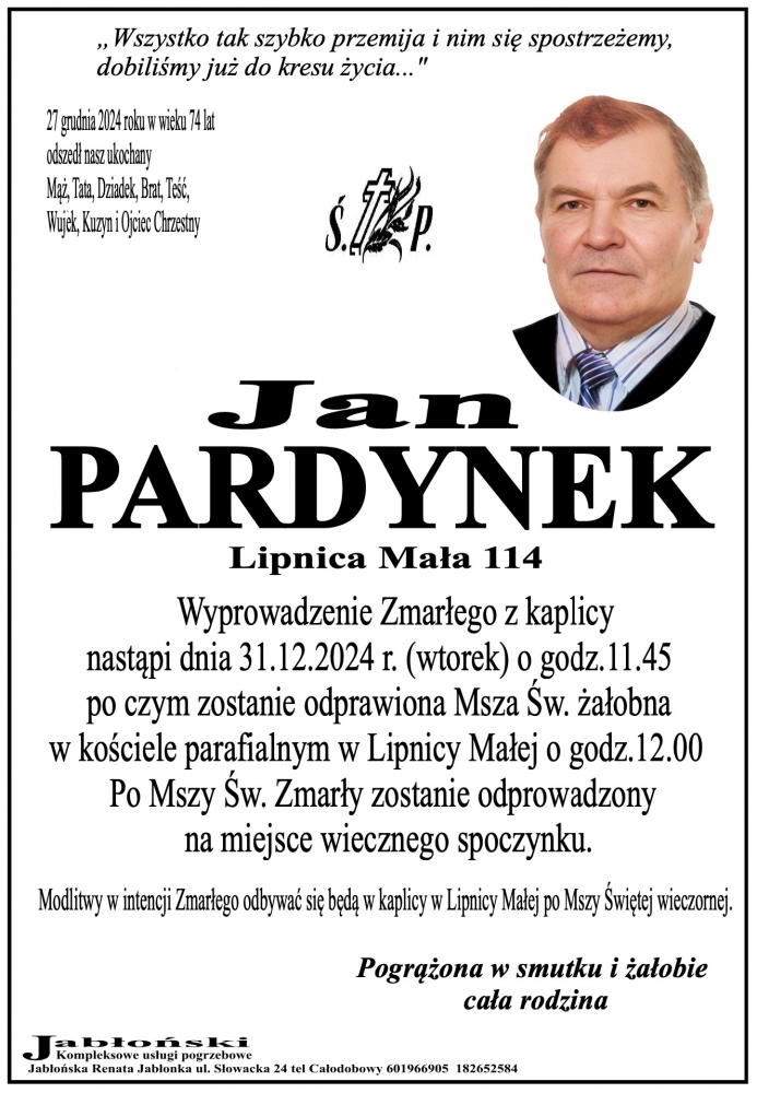 Podhale24.pl zastrzega sobie prawo do nie publikowania wspomnień, w szczególności tych nie związanych z profilem działu nekrologi, zawierających wulgaryzmy, wzywających do zachowań niezgodnych z prawem, obrażających osoby publiczne i prywatne, obrażających inne narodowości, rasy, religie itd, oraz te, bez możliwości telefonicznej lub mailowej weryfikacji ich autora.